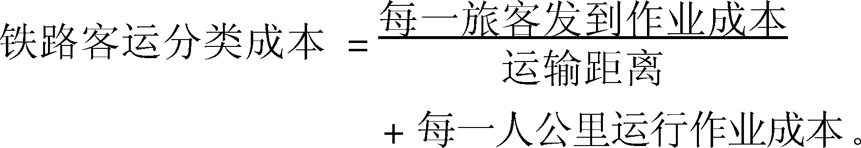 不同客車和旅客列車的旅客人公里運(yùn)輸成本。鐵路制定和調(diào)整旅客運(yùn)價(jià)的重要依據(jù)。客運(yùn)有硬座車、軟座車、硬臥車、軟臥車、簡(jiǎn)易客車、棚車代用等區(qū)別;旅客列車有特快、直快、普客、市郊等區(qū)別;各種類型客車的載客人數(shù)、車身自重、維修、折舊費(fèi)用都不相同;不同旅客列車的重量、速度、服務(wù)項(xiàng)目的服務(wù)人員數(shù)量等均有差別,從而影響著有關(guān)的支出。其計(jì)算方法是將客運(yùn)支出劃分為始發(fā)到達(dá)作業(yè)費(fèi)和運(yùn)行作業(yè)費(fèi)兩部分,據(jù)此分別求出每一名旅客發(fā)到作業(yè)成本和每一人公里運(yùn)行作業(yè)成本,再按下列公式計(jì)算各種客車與旅客列車別在不同運(yùn)輸距離的旅客人公里運(yùn)輸成本: