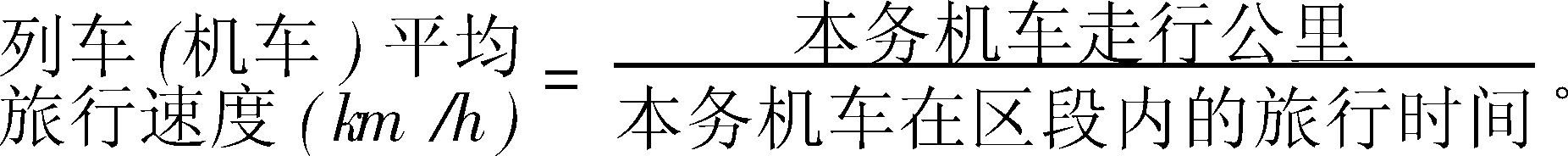 上式按客運、貨運分別計算。分母中的旅行時間包括機車在區間內的純運轉時間和機車在區段內各中間站的停留時間。機車平均旅行速度指標除受機車技術速度的影響外,還受列車在中間站停留時間的影響。因此,改善運輸組織工作,減少列車在中間站停留次數,縮短列車在中間站上辦理會讓作業和客貨運輸業務的時間,才能提高列車或機車平均旅行速度。