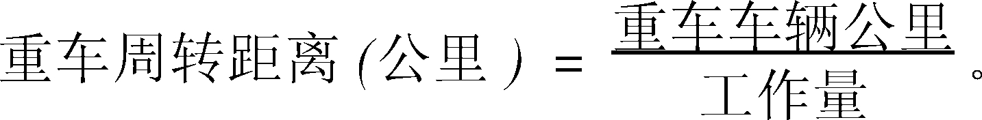 簡稱“重周距”。貨車每周轉一次在重車狀態下的平均運行距離。其計算公式為: