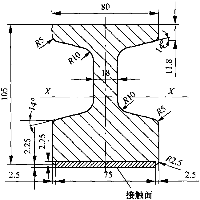 用于電氣化鐵道的鋁復(fù)合接觸軌具有與鋼接觸軌相同的截面形狀,但截面積為2100mm2的空心鋁軌經(jīng)過連續(xù)擠壓處理,5100mm2軌為軋壓實心剖面。復(fù)合接觸軌的接觸面為不銹鋼,抗拉強(qiáng)度不小于500N/mm2[3.10]。鋼鋁擠壓復(fù)合接觸軌為鋼鋁粘結(jié),其強(qiáng)度與焊接一樣。不銹鋼接觸面具有較高的抗磨能力,從而延長了使用壽命。圖3.24為鋼鋁復(fù)合接觸軌的截面。