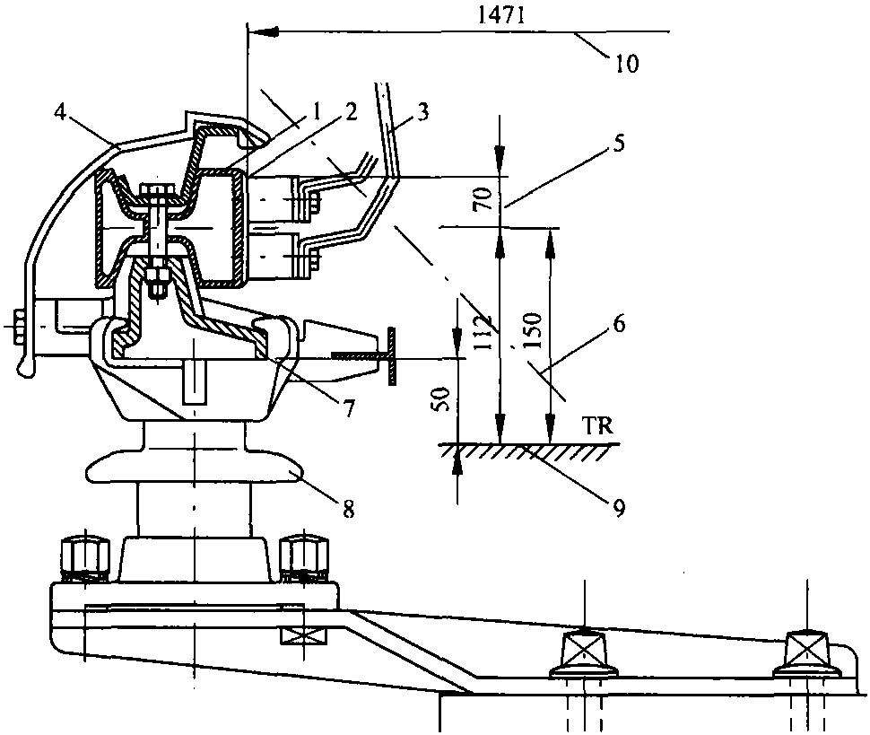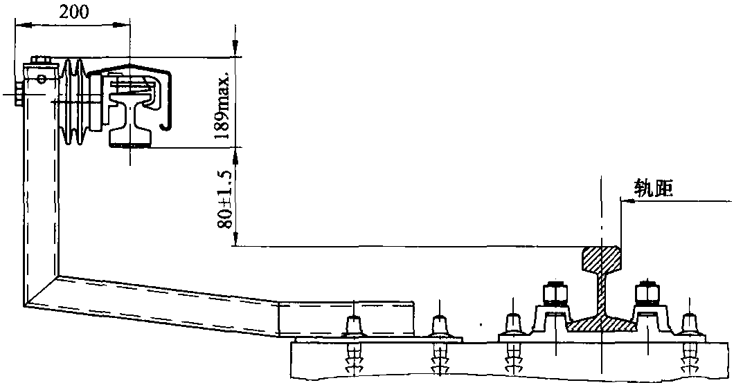 圖3.20為這種類型的鋼接觸軌的安裝樣式。在柏林都市鐵路系統(tǒng)中接觸軌支持裝置的間隔一般為5.2m。實際間隔要根據(jù)所應(yīng)用的軌枕型號和軌道上部結(jié)構(gòu)來定,間隔可擴(kuò)大至6m。