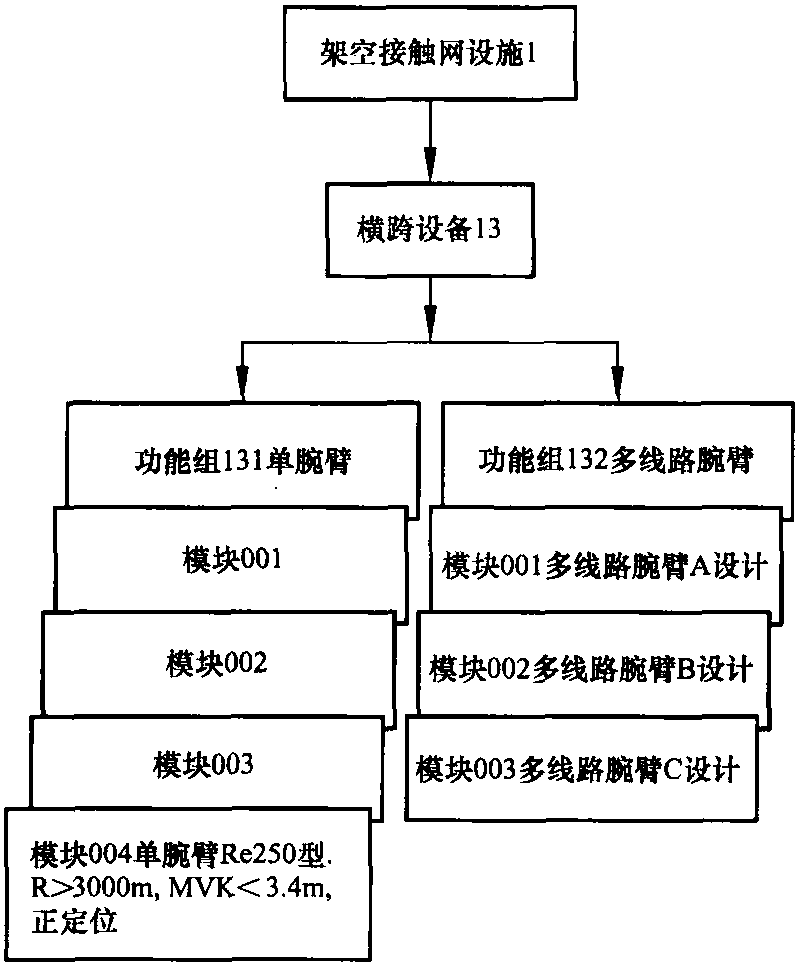 如果把接觸網設施指定為最高級,把主功能組指定為第二級,依次類推,則產生出一個如圖4.75所示的作為總結構摘錄的二維結構。