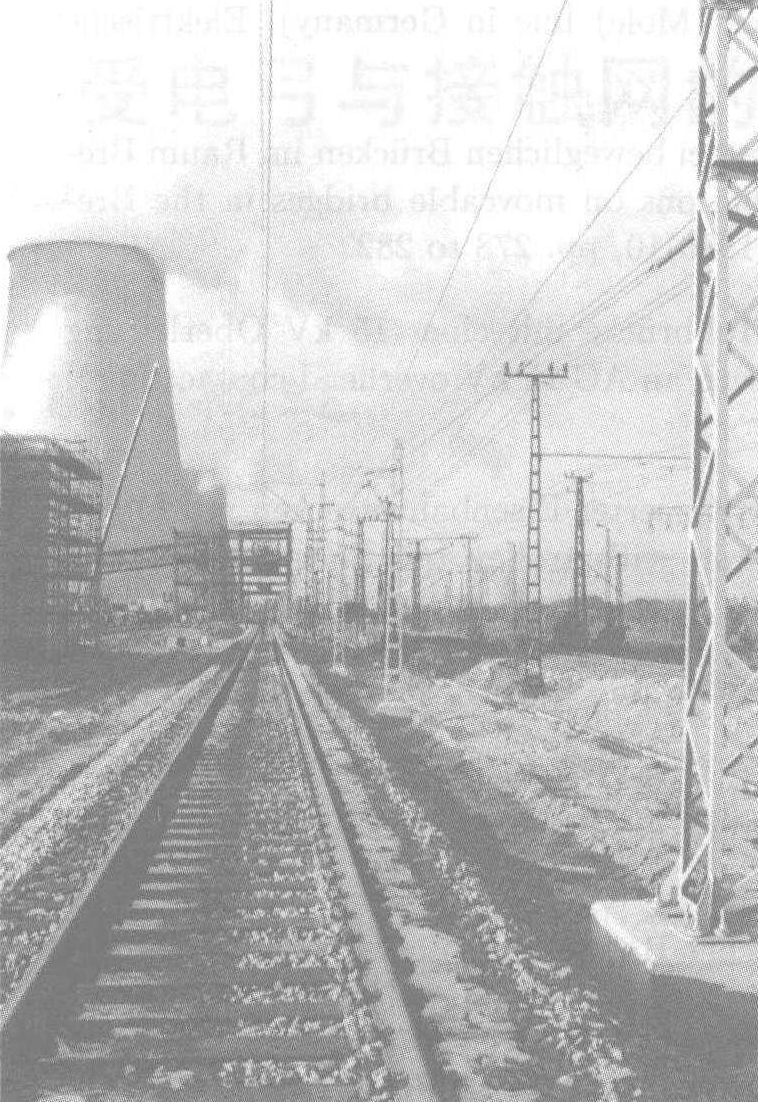 在礦區內,架設簡單接觸網電車線的支柱直接固定在可移動的鋼軌上,通常稱之為采場型接觸網(圖8.32)。鋼軌末端安裝著線架,被稱為末端固定架,以彌補礦區鐵路運行時對長度變化的要求。移動鋼軌前先通過斷路器將接觸網斷電,然后再將其接地。礦區電力機車側面裝有附加的受流器(圖8.33)。它們向股道區間內配置的用于編組操作的獨立移動裝置供電,而側面安裝的電車線為機車的裝卸作業提供了必要的空間 (圖8.34)。