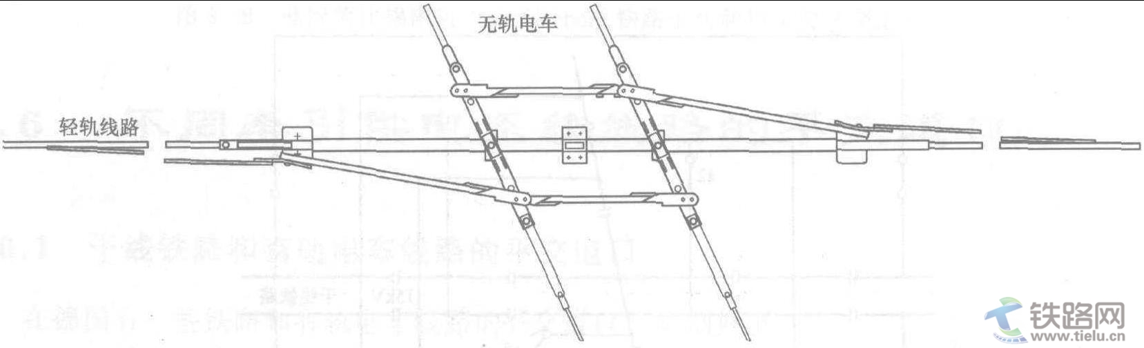 圖8.22 輕軌與無軌電車斜角交叉的接觸網布置