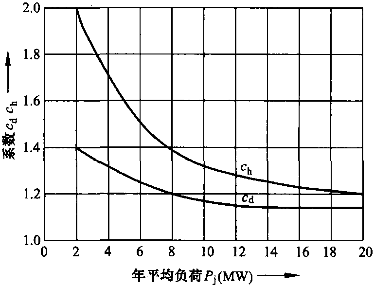 圖11.2 如 [11.1] 中給出的那樣,日負荷系數cd和小時負荷系數ch為平均年負荷Pj的函數