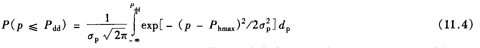 此概率P (p≤Pdd)之所以能用這種簡化形式來表示,因為Phmax《σp>0是確切的。式(11.4)也叫作隨機變數p的分布函數。假若標準偏差σp用術語變化系數來表示的話,則平均值Phmax如下