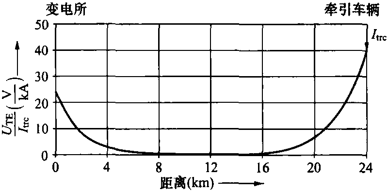例:第12.4.3.2節(jié)的實例中推導(dǎo)出,在YTE=1S/km時,每kA牽引電流的UTE=75V,在