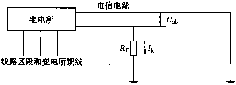 電纜護套與變電所的參考地電位相連接。如果短路電流Ik流經變電所的接地系統,那么就可以用第12.1節中定義的系數K來計算阻性耦合電壓。該電壓可以測得,等于