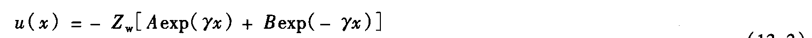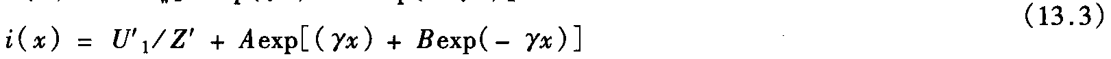 為確定局部感應電壓和電流的值,借助圖13.11中的電路可以用不同的等式來表示。在 [13.10] 中它們被稱為電報方程,其一般表達式為