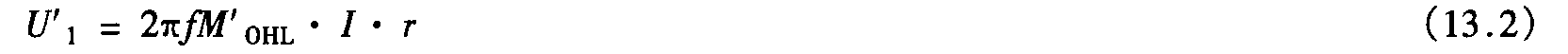 由圖13.11可以看出,接觸網電流I將在受到影響的電纜中引起一個由長度決定的感應縱向電壓(感應縱電動勢) U'1。假定受影響的電纜長度l小于產生干擾的接觸網的長度,其單位長度的感應縱向電壓(感應縱電動勢) 可用下式表示
