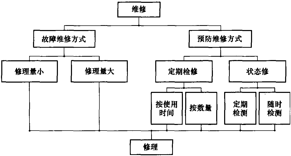 按EN13306和DIN31051標準,維修包括使運營設備保持在正常狀態、測定和評價其實際狀態和使其恢復到正常狀態等活動的全部措施。按圖14.1,這些措施可以歸類為保養、檢查和修理。但現代化的接觸網是免保養的。因此維修的內容就是檢修和修理。