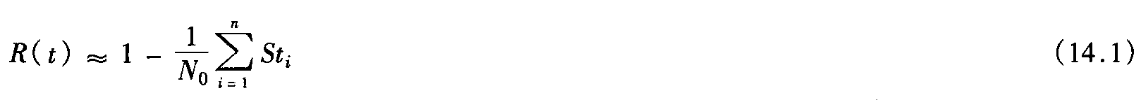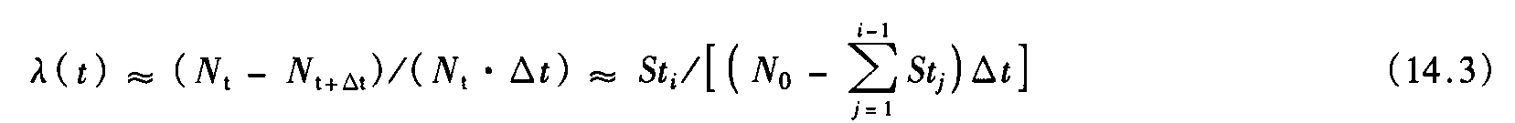 這里f(t) 是故障密度函數。如果λ (t) =常數,則能得到式 (14.4) 和f (t) =λe-λt。如果將時間段△t的起始時刻的設備數量設為Nt,則經驗故障率可由下列計算得到。