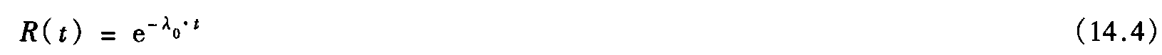 通過評估大量的接觸網故障后的統計分析得出結論,即接觸網的各種結構形式及其組成部分的故障率都有其定值 (見 [14.12] 和 [14.13])。該結論不適用于架空接觸網的接觸線,接觸線的故障率隨接觸線磨耗的增大而增加 (見 [14.12] 和 [14.14])。然而,故障率λ (t) 為定值λ0則意味著: 故障密度函數f (t) 是呈指數式分布。下面的無故障運行概率R (t) 與故障率之間的關系式有普遍適用性 [14.15]: