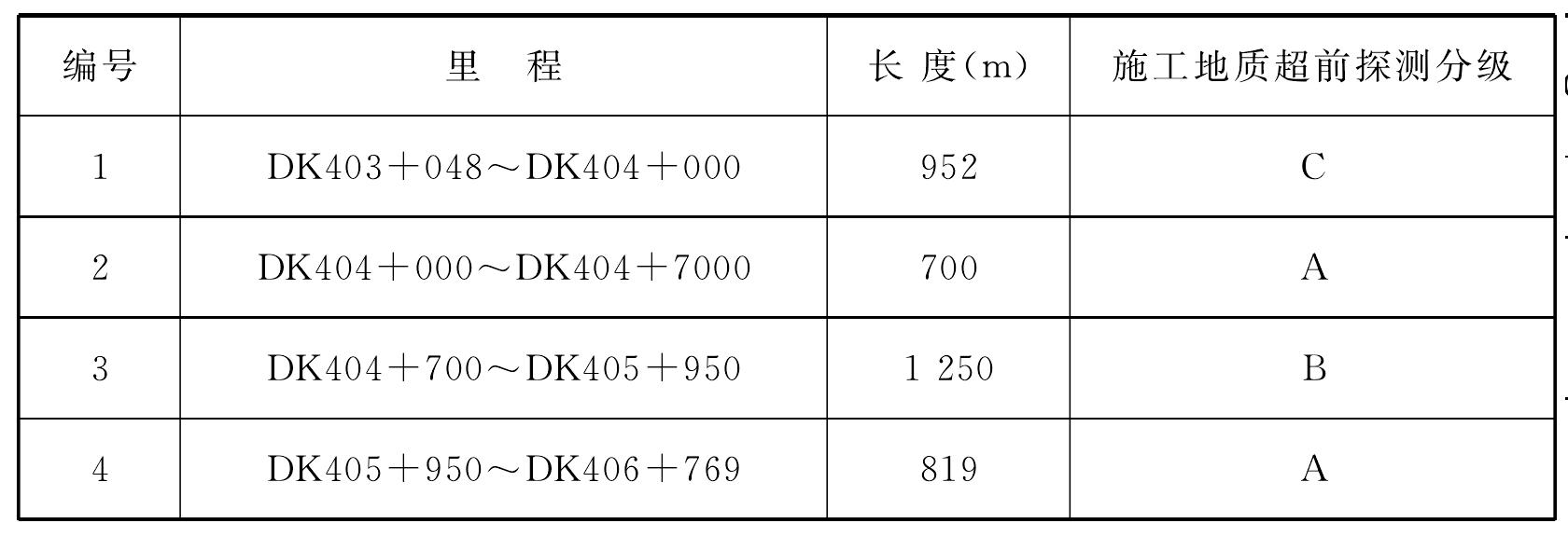 表6-6別巖槽隧道施工地質(zhì)超前探測分級表