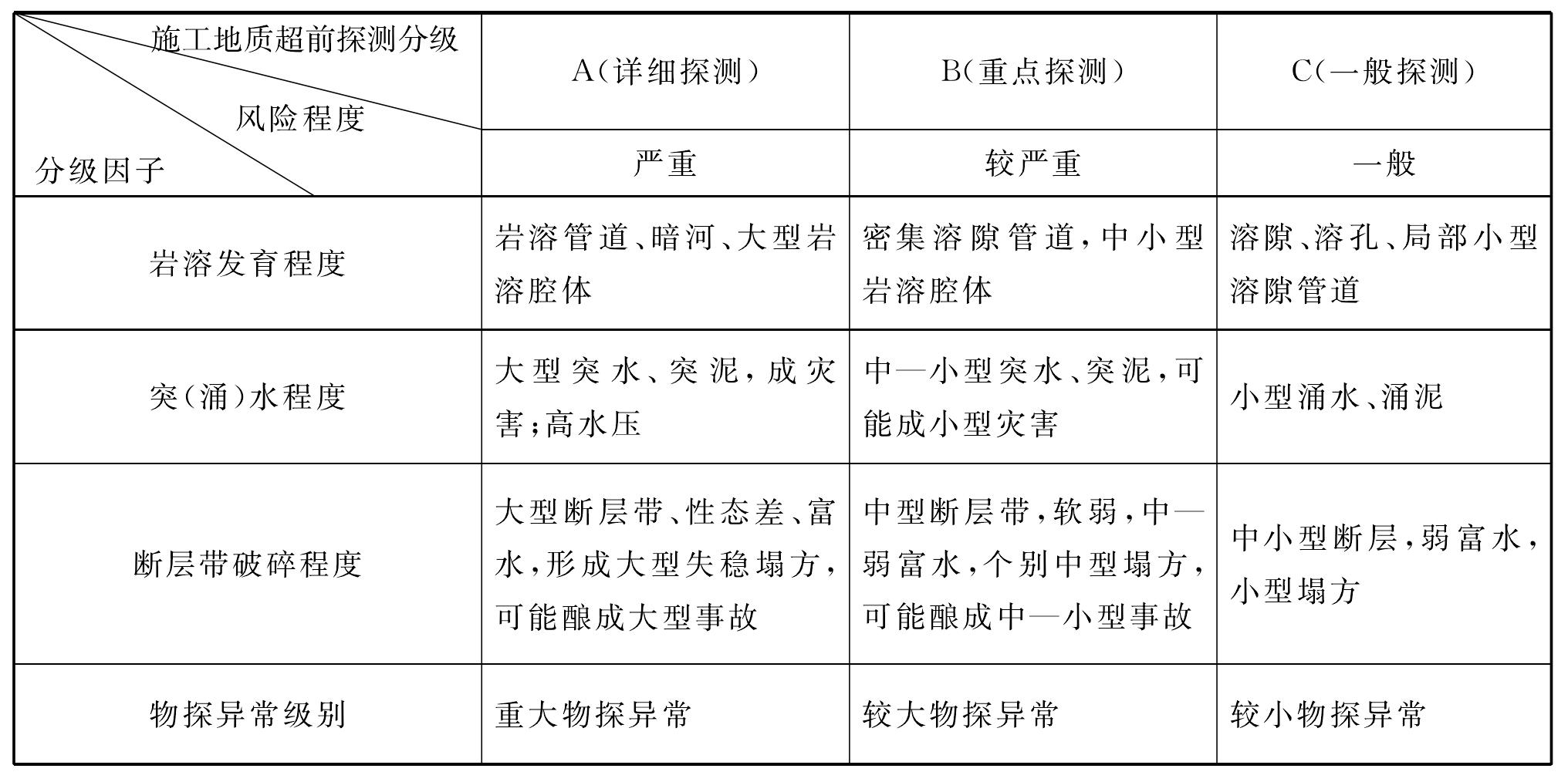 表6-5 宜萬鐵路隧道工程施工地質(zhì)超前探測分級表