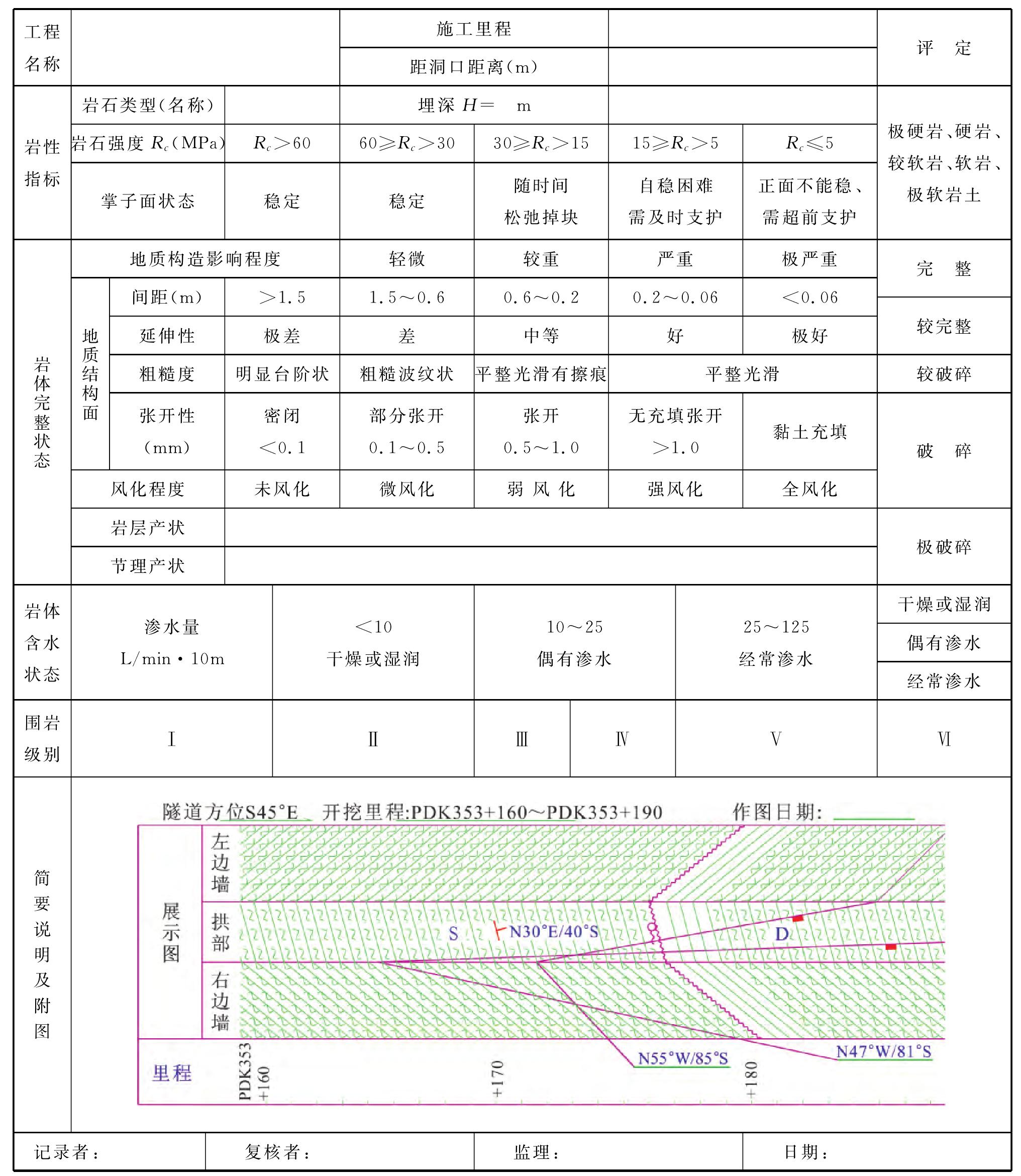 表6-2施工階段圍巖級別判定卡及地質素描表
