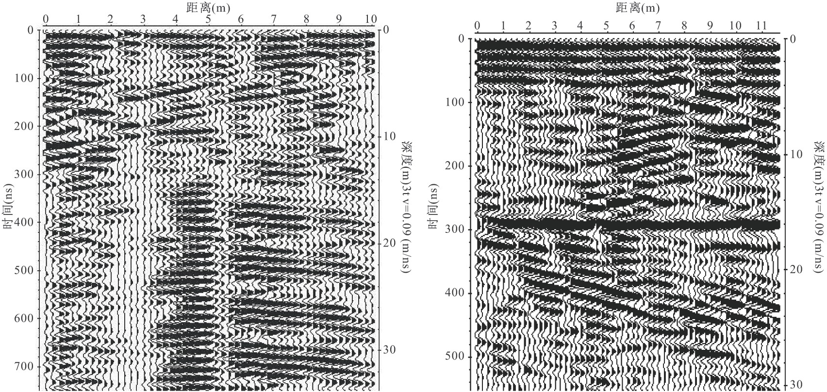 試驗(yàn)表明,地質(zhì)雷達(dá)天線以屏蔽天線為佳;采集前應(yīng)對(duì)掌子面進(jìn)行平整處理,應(yīng)清除施工機(jī)械,使天線與掌子面能有較好的耦合。