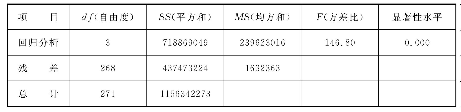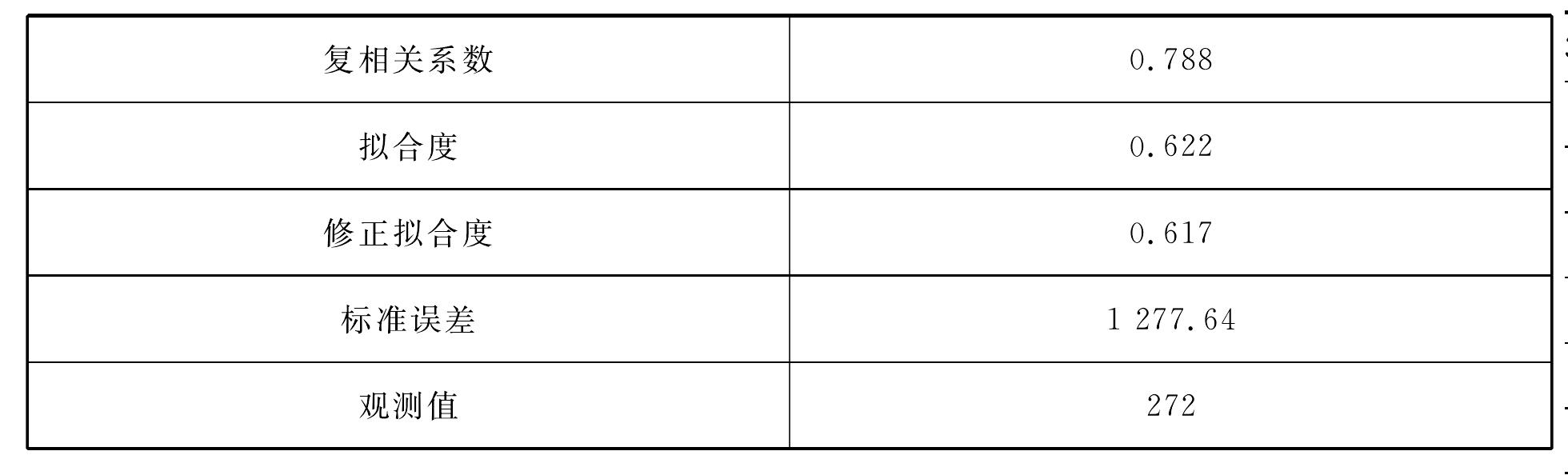 該方程的復相關系數R=0.788,擬合度R2=0.622,顯著性水平F=0.000,回歸顯著。