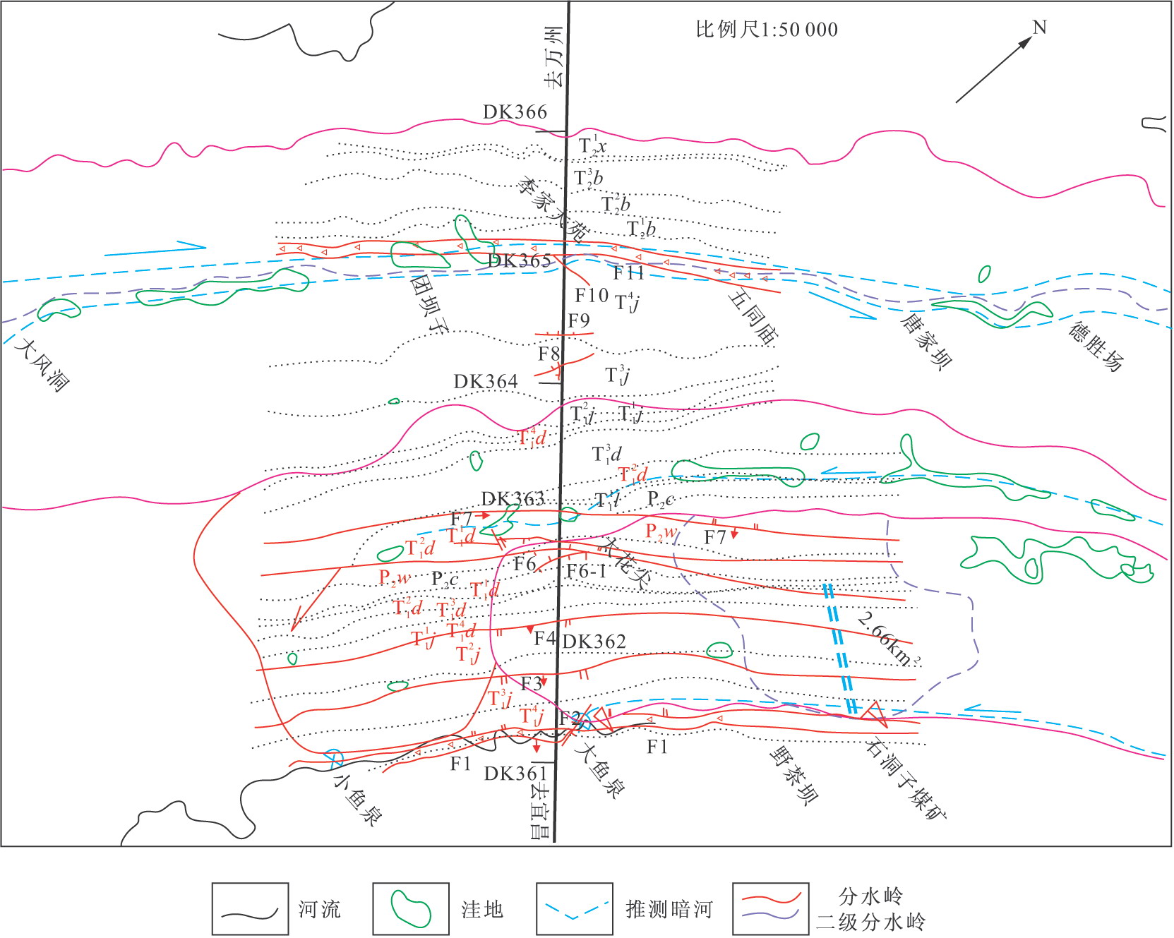 圖7-10齊岳山隧道進口段巖溶水文地質略圖