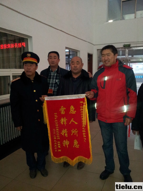 12月12日上午,一位旅客匆忙下車把衣服(內裝現金1300元、身份證、銀行卡等)落在了車廂里。客運副主任樊寶麗、客運員趙斌得知情況后趕緊聯系列車員,幫助把遺失物品找到,并在晚上的1815將遺失錢物送回到這位旅客手里。受到旅客的稱贊,并送來感謝信一封,錦旗一面。(圖為旅客向車站送來錦旗)