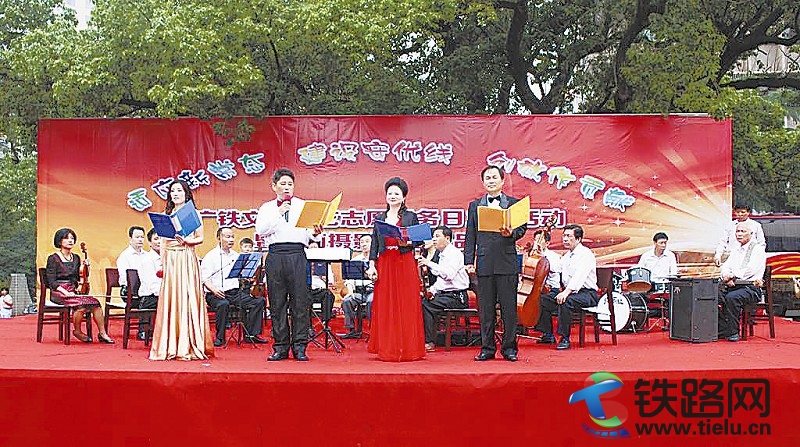 “坐熱你的板凳,溫?zé)嵛业那椤槟愠赘瑁倚那楹芗?dòng)。”劉豐年、袁路平的一曲反映中國文藝志愿者深入生活、扎根人民的主題歌 《走近你》拉開了活動(dòng)序幕。接下來,主持人宣布由廣鐵集團(tuán)黨委副書記、文聯(lián)主席李新民同志致開幕詞。
