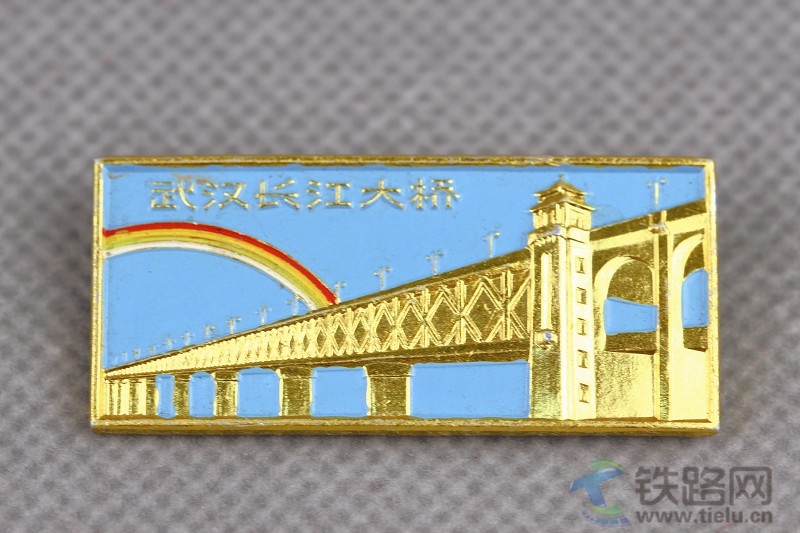 武漢長江大橋紀念章是1964年鐵道部展覽處 (中國鐵道博物館前身)遵照鐵道部指示,為慶祝我國鐵路建設的偉大成就而設計制作的。紀念章圖案寓意武漢長江大橋猶如一道飛架的彩虹,在長江天塹上鋪就坦途。