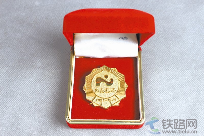 圖1:這枚南昆鐵路通車紀念章為合金質地,整體形狀設計為兩個疊放的六邊形,正面有“南昆鐵路1990—1997”字樣,背面有“南昆鐵路建設紀念中華人民共和國鐵道部”字樣。