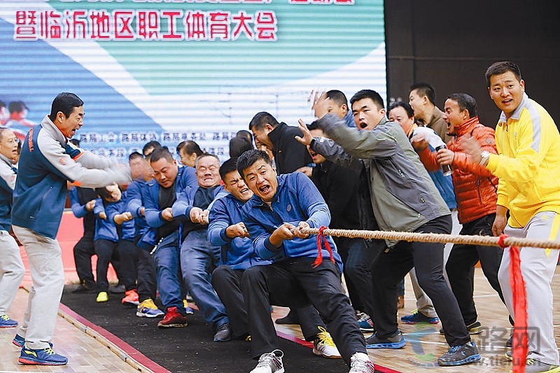 圖為青島供電段臨沂供電車間職工正在參加拔河比賽。王峰攝