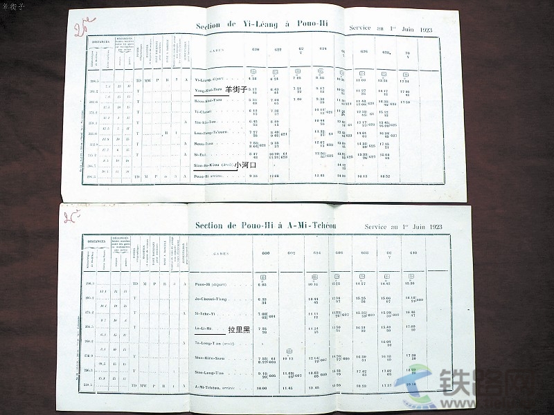 云南鐵路博物館近期收集的一份法文《滇越鐵路列車時刻表》為我們提供了線索。這是一份不完整的列車時刻表,雖然只有中段的宜良至婆溪和婆溪至阿迷州段,沒有上段的云南府至宜良段和下段的阿迷州至河口段,但在時刻表上我們可以看到后建車站中的羊街子、小河口和拉里黑3座小站。這份殘缺的列車時刻表標明的啟用時間是1923年6月1日。由此我們可以推斷,在這9座新增小站中,至少這3座車站是在1923年以前就修建運營了。