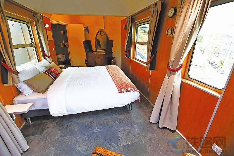 圖②為火車套房內(nèi)景;疖囂追课挥诼灭^的頂樓,由火車車廂直接改造而成。圖③為火車主題旅館的火車套房外景。龔兵攝