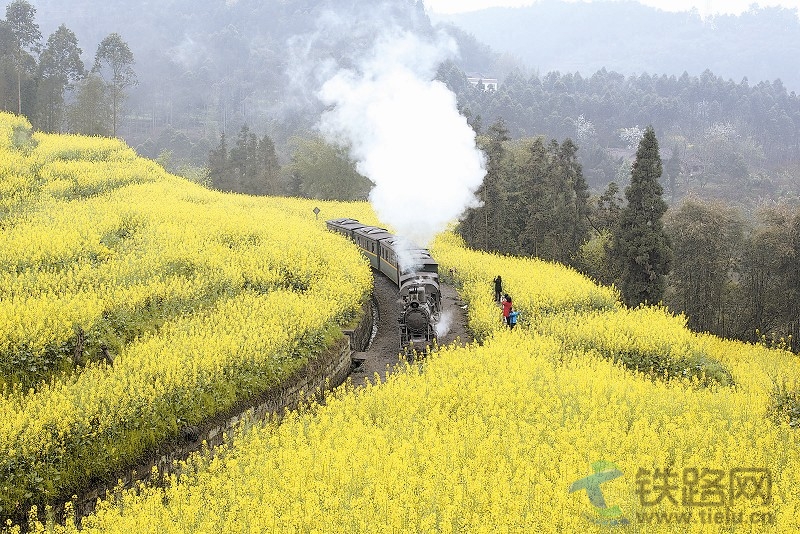 在四川省樂(lè)山市犍為縣,目前依然運(yùn)行著的老式窄軌蒸汽火車——嘉陽(yáng)小火車迎來(lái)了旅游旺季。