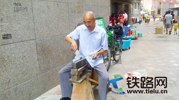 磨菜刀這一漸行漸遠(yuǎn)的行當(dāng),在今天的生活中很難遇見(jiàn),幾成絕響。8月10日上午,記者在位于西安廣安路西岸國(guó)際花園小區(qū)內(nèi)偶遇磨刀匠屈老伯。他在小區(qū)空地上支起了簡(jiǎn)易的磨刀凳子,開(kāi)始展示手藝,不一會(huì),磨刀攤旁就聚集了過(guò)往的市民,有的詢問(wèn)價(jià)格,有的好奇觀望,好不熱鬧。