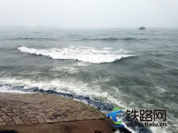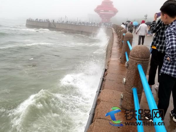 我緊走幾步,穿過澳門路,也來到大海岸邊,憑欄遠眺,天空低沉,陰雨霏霏,海風陣陣,海浪濤濤,一浪接著一浪,沖擊海岸,激起數米浪高,引起游客市民驚呼。