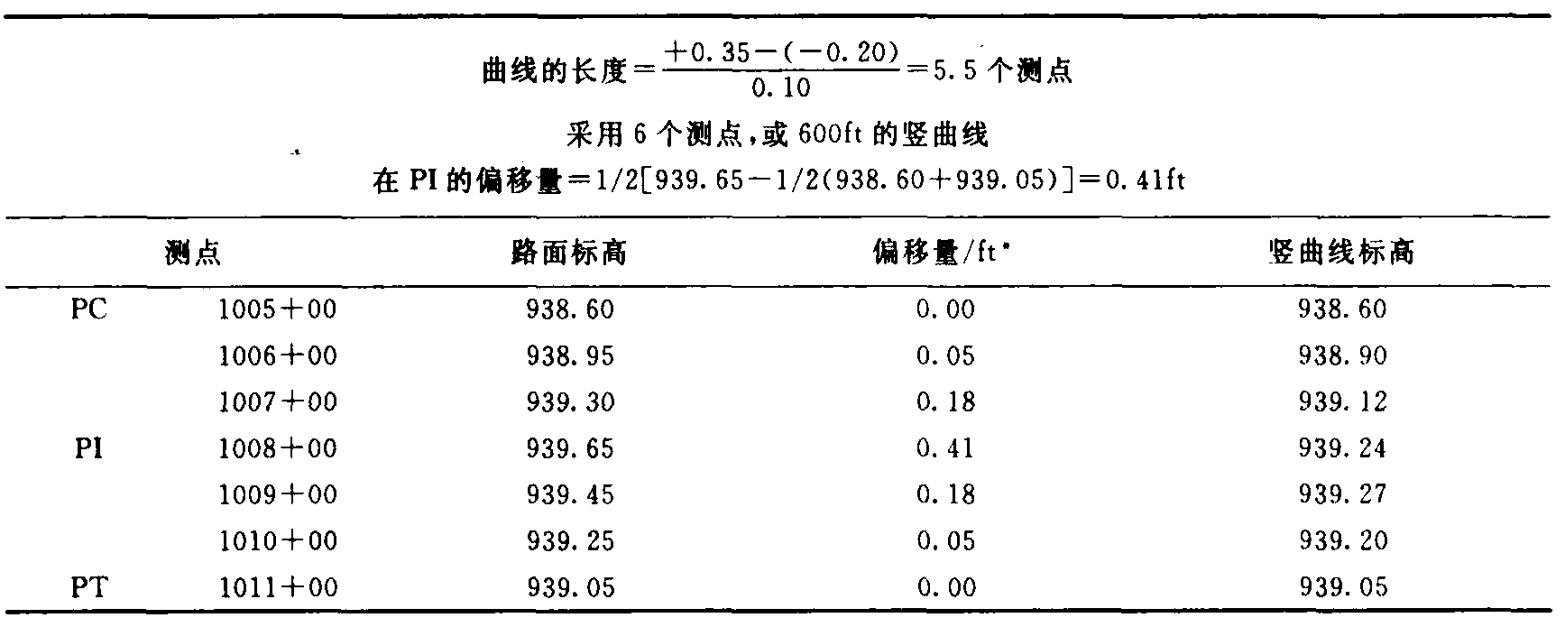 一般以這種方式確定的豎曲線的長度將不是一個偶數測點,使用下一個偶數測點的豎曲線是更簡單且符合要求的。也就是,如果計算的長度是7.2個測點,就使用8個測點的豎曲線。