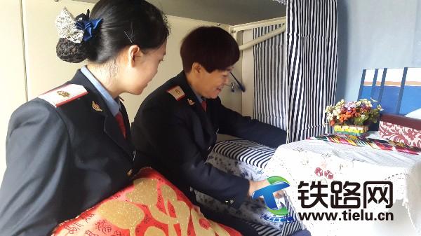 “宿營車是一個班組的重點崗位,你們要有很強的接待意識,要有眼色,干活要麻利,工作標準要比其他車廂高”;“宿營車是乘務員休息的地方,除了要營房化,還要把宿營車布置的溫馨、舒適,讓乘務員感受到家的溫暖”。烏魯木齊鐵路局烏魯木齊客運段北京三組的乘務員王麗榮一遍又一遍仔細叮囑著兩位徒弟,她恨不得把自己所有的工作經驗都傳授給她們。
