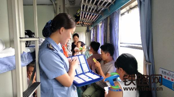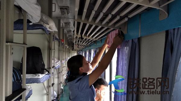已經單獨乘務兩趟車了,薛玉晶的工作受到了列車長和乘務員以及旅客的認可。從接車后的車門、車窗安全卡控,到臥具備品清點擺放,途中小桌、窗臺的擦抹、車廂地面的清掃,廁所及時沖刷,她做的一絲不茍。工作中不懂不會的,她會及時向列車長和同事請教。旅途中面帶微笑為旅客服務是她的常態(tài),照顧車廂中的重點旅客,老人和兒童是她重點服務的對象,為旅客介紹安全常識。她所在的13號車廂衛(wèi)生干凈整潔,旅客乘坐的舒適愉悅。在這炎炎夏日里,薛玉晶的服務為旅客們送去一絲清涼!
